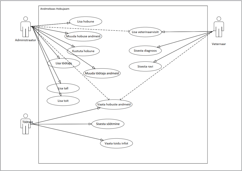 Aktorid ja kasutusjuhtumid ühendatakse oma vahel joonega või noolega